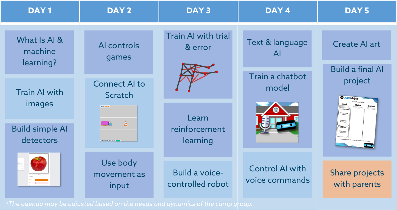 Throughout the camp, Ninjas explored game design, coding, and world-building using Roblox Studio. Here’s a recap of the topics they mastered: