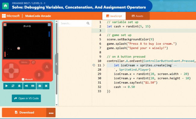Early belts introduce core concepts as kids build projects using easy-to-learn block coding in Microsoft MakeCode.
